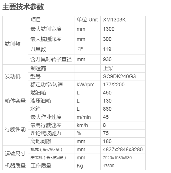 XM1303K是一款具有高性能的一米三銑刨機(jī),主要用于公路、城鎮(zhèn)道路、機(jī)場(chǎng)、貨場(chǎng)、停車場(chǎng)等瀝青混凝土面層的開挖翻新?梢愿咝У颓宄访姘b包、油浪、網(wǎng)紋、車轍等;亦可開挖路面坑槽及溝槽;還可用于水泥路面的拉毛及面層錯(cuò)臺(tái)的銑平。該設(shè)備工作效率高,施工工藝劍達(dá),銑刨深度易于控制,操作方便靈活,機(jī)動(dòng)性能好,銑刨的舊料能直接回收利用,可廣泛地用于瀝青路面的維修翻新養(yǎng)護(hù)施工之中。